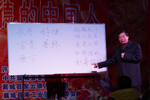 1月21日-1月22日, 由我公司主辦、河南省滎陽孝文化促進(jìn)會協(xié)辦的“弘揚(yáng)優(yōu)秀傳統(tǒng)文化公益講座”在我公司大禮堂成功舉辦。 公司300多名職工、職工家屬及來自不同村鎮(zhèn)的傳統(tǒng)文化愛好者等共計700余人參加了本次講座。 本次講座為期兩天,分別邀請了河南省孝文化促進(jìn)會副會長馮崇章、韓逸云教授、傳統(tǒng)文化老師張正三位專家學(xué)者。他們分別講述了傳統(tǒng)文化中倫理道德、因果輪回及五福人生。 講座通過老師授課、同學(xué)分享、學(xué)員間互相交流等形式,在很大程度上提高了學(xué)員們對傳統(tǒng)文化有了更深刻的認(rèn)識和理解: 倫理道德讓我們明白:通過消除“怨恨惱怒煩”,恢復(fù)“仁義禮智信”,內(nèi)省懺悔,改正過錯,改善人際關(guān)系,通過盡孝道、丈夫道、媳婦道、姑娘道,讓家庭和諧,通過勸導(dǎo)使患者心結(jié)打開,平和心態(tài),調(diào)整心性。善待父母,善待家人,家庭是樹,老人是根,子女是果,只有孝敬父母子女才會興旺。 因果輪回告訴我們:凡做一件事、說一句話、甚至動一個念頭都是種因,隨其善惡的性質(zhì)和份量,都有恰如其分的結(jié)果在后邊;遲早總會由自己承擔(dān)相應(yīng)的結(jié)果。正如牛頓第三定律:作用力與反作用力大小相等、方向相反、作用在同一條直線上,正所謂聰明用盡,不如本分做人! 如何獲得五福人生:長壽、富貴、康寧、好德、善終。此“五德”是一切快樂和幸福的源泉,是一切好運和福氣的根本。但快樂、幸福、好運、福氣及一切享受的東西,都像是樹上的果,摘完了就需要我們及時、不斷的再施肥、再培植。 愿天常生好人,愿人常行好事,愿五福常臨好人,愿好人常享五福 |
