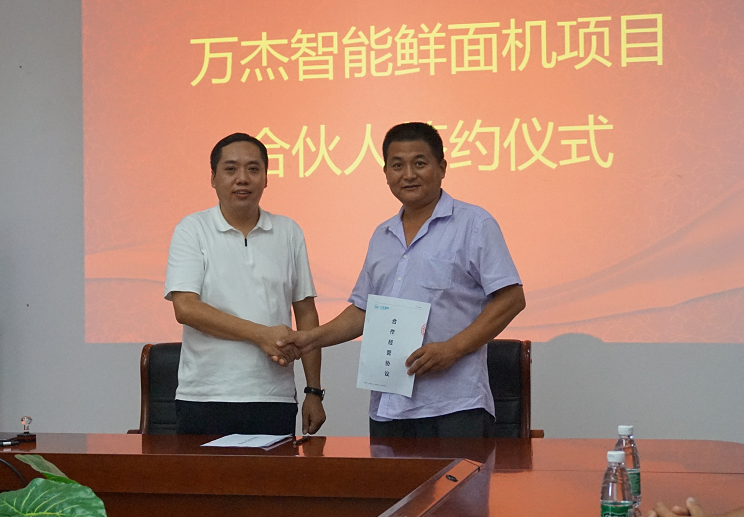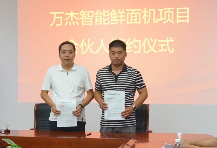 2017年8月4日,萬(wàn)杰智能總部又迎來(lái)山東省兩位合作伙伴,山東省泰安市華任經(jīng)貿(mào)有限公司劉總、山東省曲阜市鑫海商貿(mào)有限公司楊總分別與萬(wàn)杰智能簽署了《智能鮮面機(jī)合伙人合作協(xié)議》。 此次,泰安、曲阜兩市的加入,標(biāo)志著萬(wàn)杰智能鮮面機(jī)項(xiàng)目山東市場(chǎng)正式開啟。至此,萬(wàn)杰智能鮮面機(jī)全國(guó)招商突飛猛進(jìn),赤峰、新鄉(xiāng)、鄭州兩個(gè)區(qū)域、鶴壁、寧波、義烏、溫州、洛陽(yáng)、大慶、許昌禹州市、泰安、曲阜相繼加入,全國(guó)招商工作屢獲佳績(jī)。 萬(wàn)杰智能董事長(zhǎng)王曉杰與山東省泰安市華任經(jīng)貿(mào)有限公司劉總 萬(wàn)杰智能董事長(zhǎng)王曉杰與山東省曲阜市鑫海商貿(mào)有限公司楊總 山東省是我國(guó)面食大省,尤以打鹵面最為著名和正宗,現(xiàn)制鮮面條的出現(xiàn),將會(huì)為當(dāng)?shù)匕傩彰媸成畹?/font>“安全、健康、營(yíng)養(yǎng)”創(chuàng)造了更多可能。 得益于主食安全和模式創(chuàng)新,萬(wàn)杰智能聚集了全國(guó)各地的事業(yè)合作伙伴,各個(gè)城市的合伙人與萬(wàn)杰智能共同扛起“主食安全”的大旗。可以說(shuō),獲得收益,充其量只是門生意,而造福百姓,然后讓所有參與者共同受益,這才可稱得上是一份事業(yè)。萬(wàn)杰智能鮮面機(jī)項(xiàng)目的合伙人正是這樣一支隊(duì)伍,做主食安全,為一方百姓,這份既有擔(dān)當(dāng),又前景可觀的事業(yè),誠(chéng)邀全國(guó)地區(qū)意向合作伙伴。 萬(wàn)杰智能主食機(jī)械——為億萬(wàn)家庭主食安全服務(wù)!