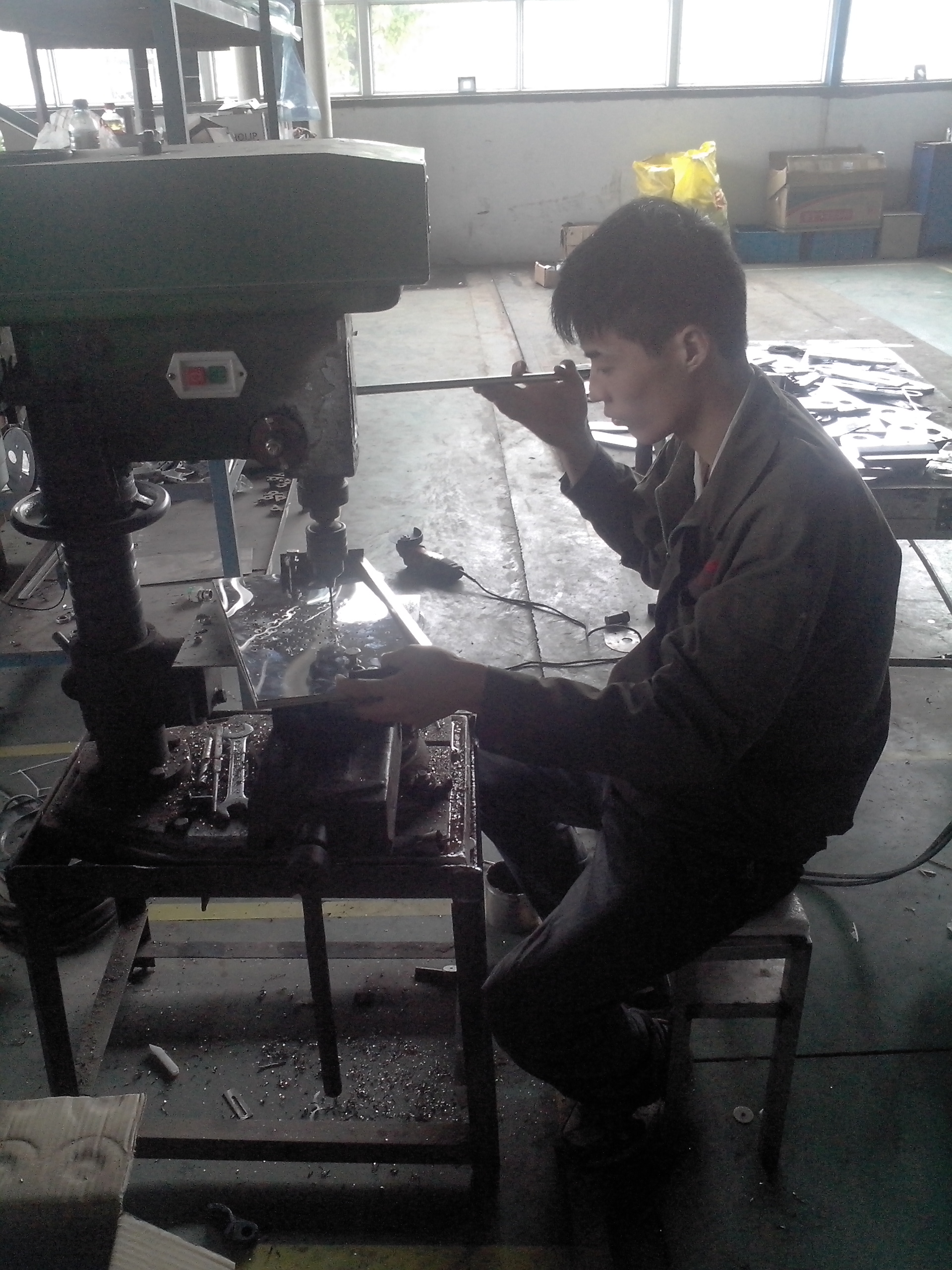 組裝車間職工宋占強,于20129月份加入萬杰。平常在組裝方饃機部件機頭邦時,每次安裝方饃機底腳板總是要手拿底腳板比劃著號孔,這樣下來不但工作效率低、而且還有偏差;另外在每次安裝方饃機彈簧擋片時,總是需要用手掰或用鉗子制出一個圓弧,安裝效率同樣很低,并且圓弧效果也不一致。宋占強經過認真思考與觀察,專門針對此兩道工序自制了兩套夾具,該夾具使用方便,號出來的孔位準,不僅制作出的彈簧擋片效果一致便于安裝,而且大大提高了生產效率!