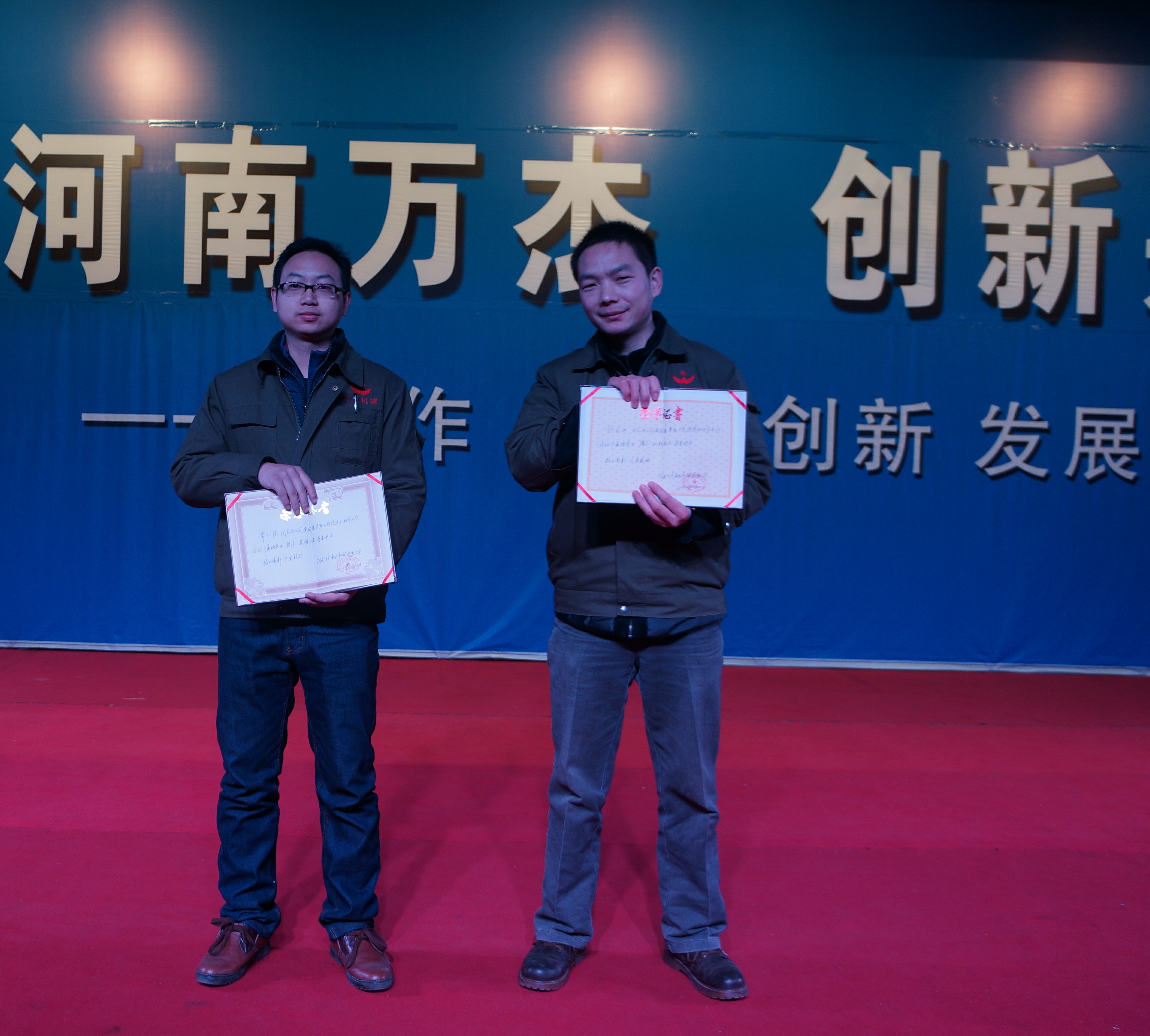 2013年12月30日,公司在二樓演播大廳再次召開了表彰大會,授予品保部陳志遠同志“創新標兵”榮譽稱號、授予品保部常玉強同志“榮耀之星”榮譽稱號,對黃金層蒸房改善小組獎勵現金1000元。董事長親自為其頒發榮譽證書和獎金。