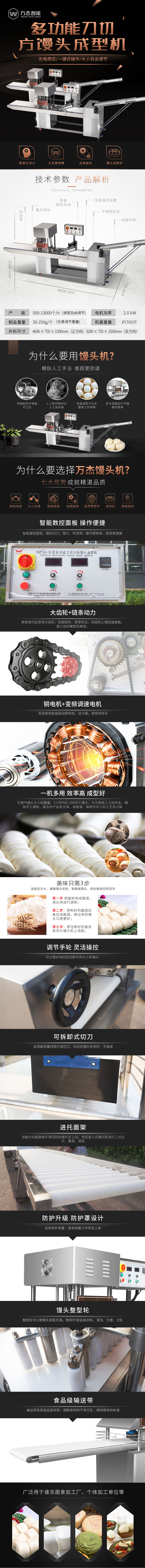 DMT90-VII系列數(shù)控多功能方形饅頭成型機廣泛適用于速凍面食加工廠,主要用來生產(chǎn)刀切饅頭及花色點心。